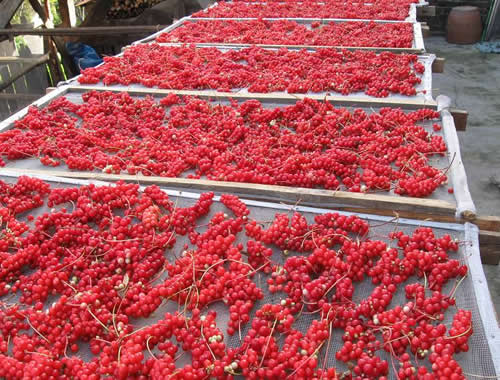 節能型燃煤五味子烘干房:燒煤、燒柴通用型智能化烘干機日產量1-20噸。耗能低、產量高、成本低、速度快等優勢。適合用于山區和農村地區。 節能型燃煤五味子烘干機按國際標準制作,烘干房采用了PLC大屏幕顯示屏,可顯示整個烘烤過程的工藝曲線。熱源以煤或柴為燃料,房體由可以選擇多種材料防火保溫巖棉板,也可以采用磚砌體建造,整個設備經久耐用,穩定性好。規格:6-8米長、3-4米寬、2.2-3米高。每小時每小時耗煤量5-8公斤,每小時電3-6千瓦。設計科學、自動化程度高,可滿足每個客戶烘烤的特性,烘烤曲線可以自行編制每個時間段。